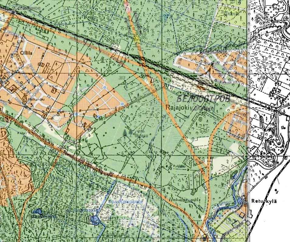Спасибо, а я пока добавлю привязку карты 39 года с современной, 2002 года - района Раяйоки. Надпись БЕЛООСТРОВ выглядит в этом месте несколько нелепо. Трасса старой ветки на Сестрорецк обозначена пунктиром.