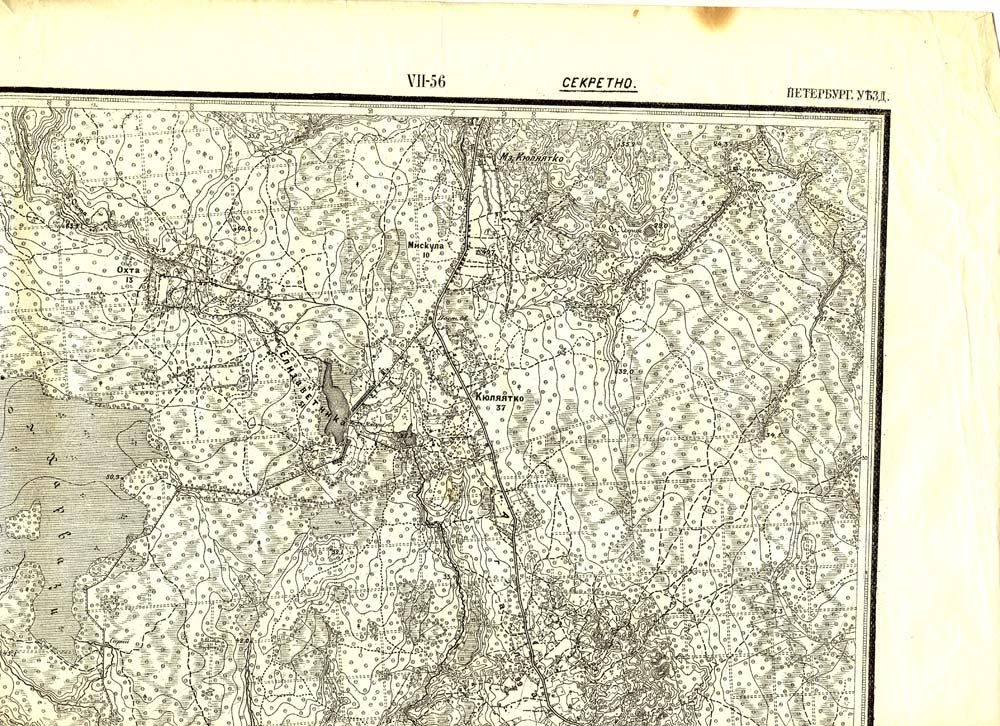 Ко всему сказанному надо добавить, что Aua$erg совершенно справедливо указал на отсутствие ветки Белоостров-Сестрорецк, а это говорит о том, что карта должна датироваться ранее 1916 года.