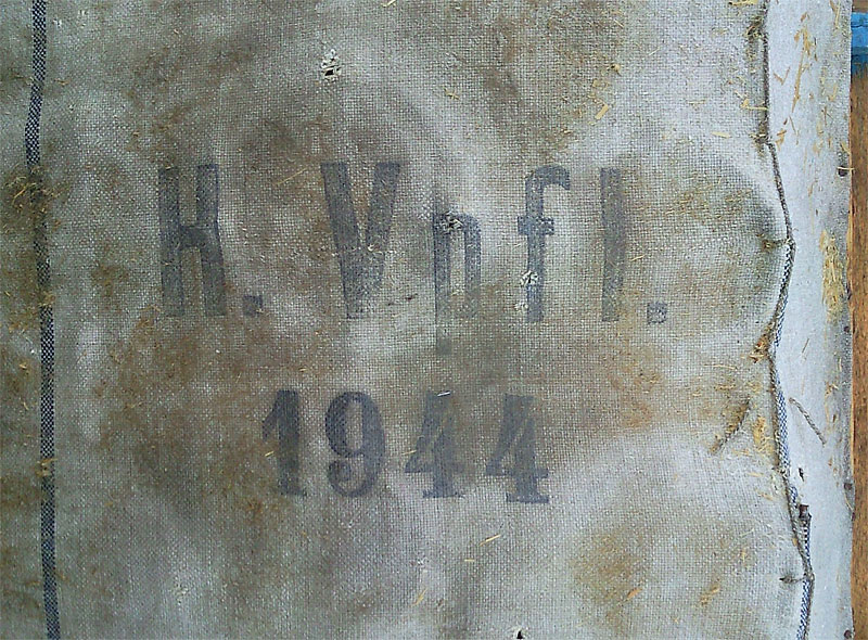 Решил тут разобрать-выбросить старую оттоманку, что с незапамятных времён на даче стояла. Совершенно неожиданно для себя обнаружил такую вот нижнюю обивку (низ, где каркас и пружины). Была мысль, что просто тряпку такую нашли и переобили. Но похоже, обивка штатная.