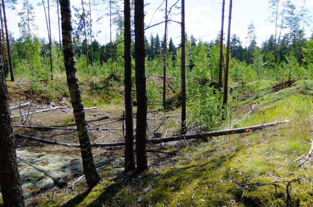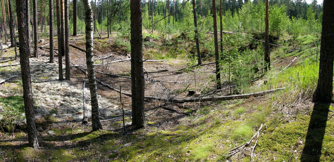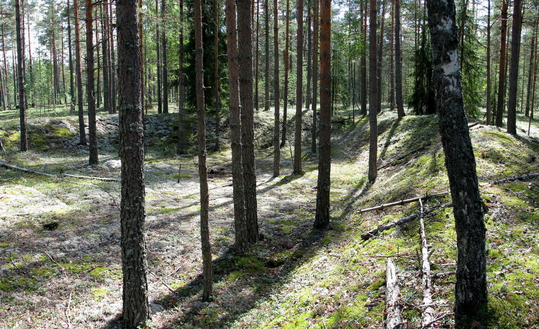 Лес на аэродроме высажен ровными рядами. Наверняка послевоенные посадки, чтобы финский "запах" уничтожить. Оставлены только дороги и ВПП. Мы осмотрели только два капонира для самолетов и кусок территории где-то 200 на 50 метров. Возможно, что есть что-то более интересное