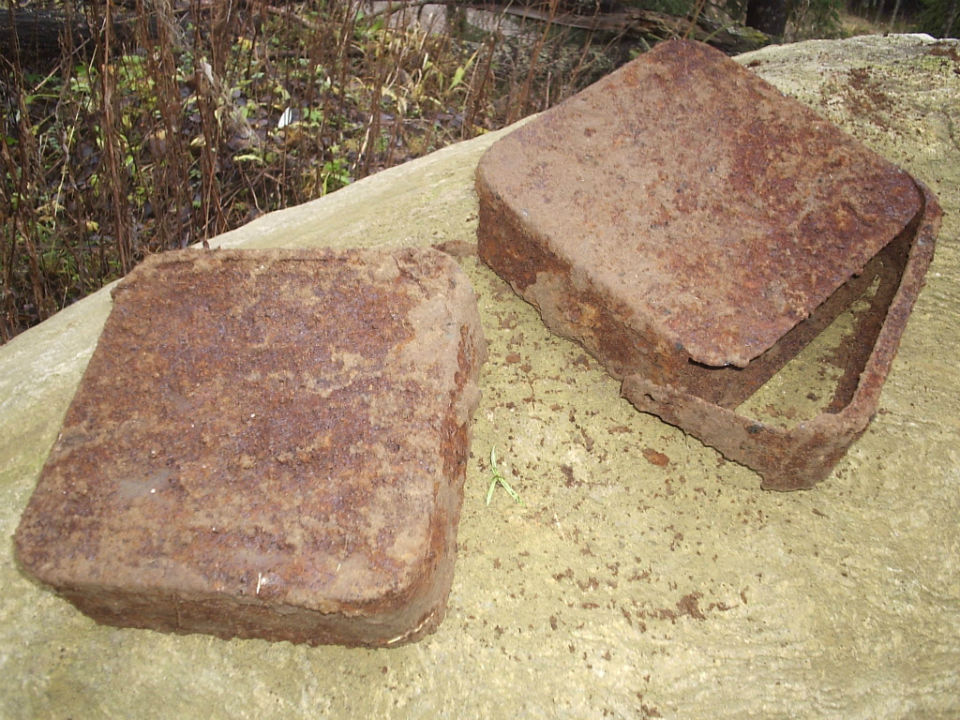 Вот все что удалось найти на месте предполагаемого штаба 7 пехотного полка Финской армии в районе Термолово.Останки шлема М-18...Поиск невозможен по причине килограммов современных осколков на 1 кв.м.