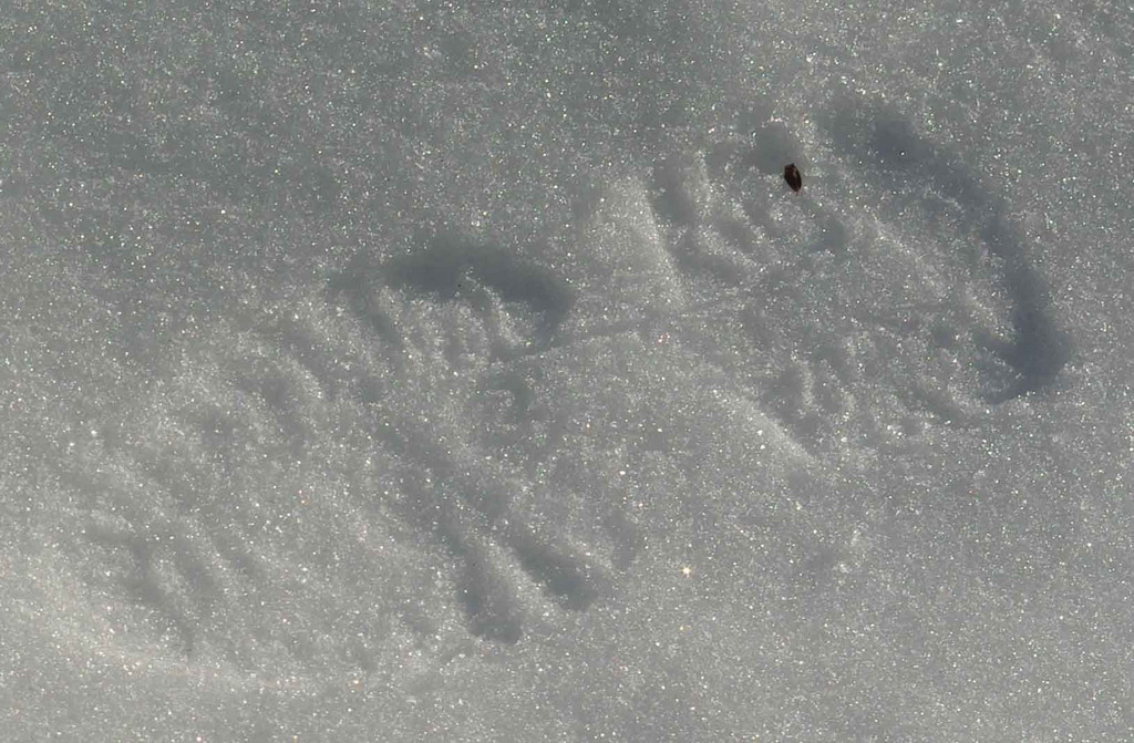 У нас первого апреля тоже кто-то очень маленький в подвал проник. И на снежном насте следы были неглубокие.