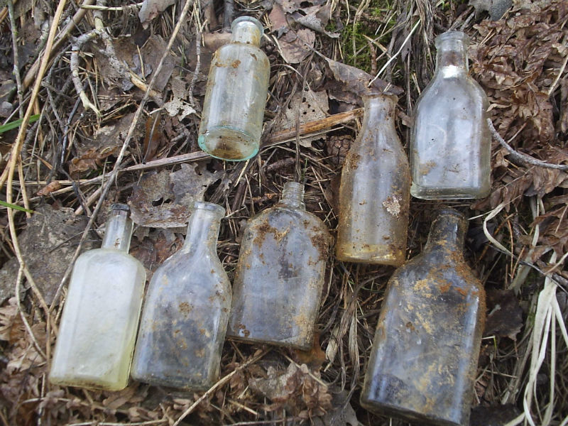 Ну вообще основная масса стеклянных пузырьков и бутылочек,найденных в наших краях одинаковая. Видимо которые широко применялись в быту-от духов,одеколона,основных лекарств.Наверно были особо популярные виды парфюма-как Тройной одеколон и духи Красная Москва