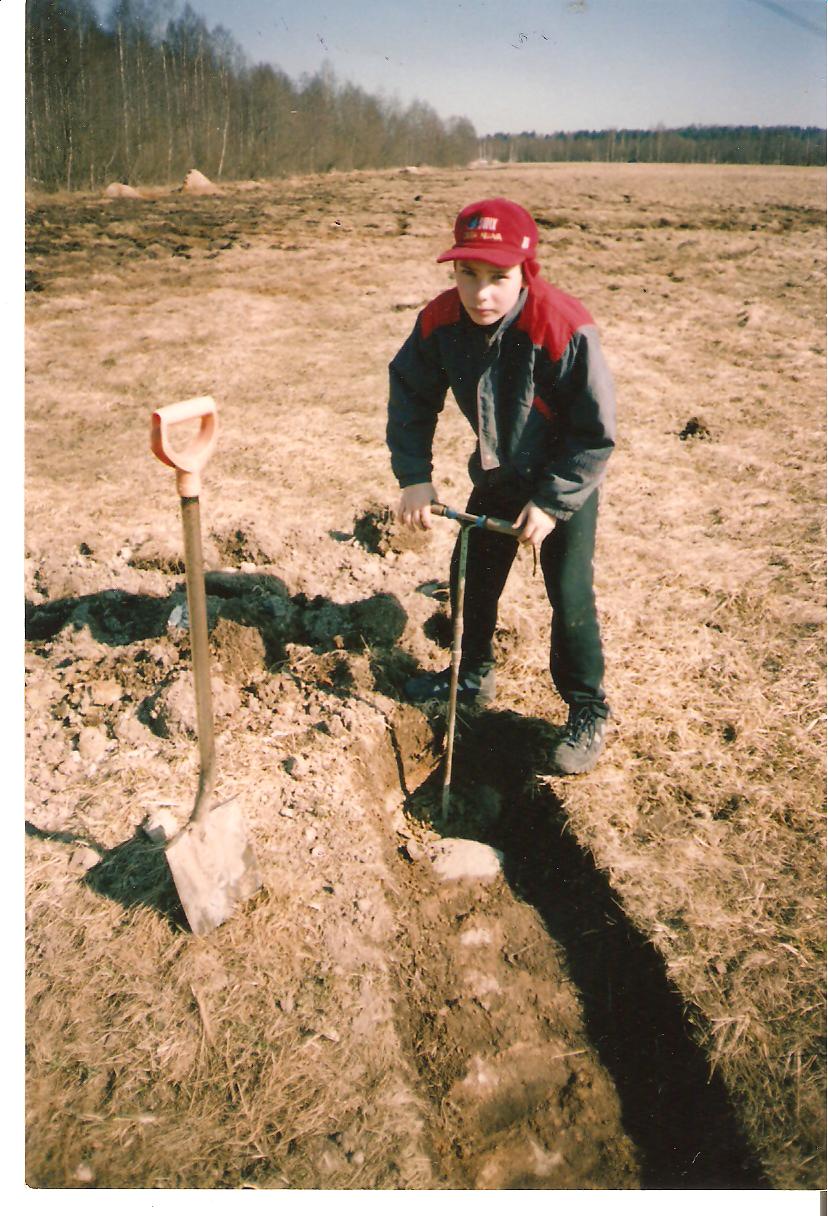 6.Архитектор А.Н. Семенов не расширял Кайдановскую церковь в 1887г., а производил косметический и частично капитальный ремонт церкви. А также отвод воды от фундамента по глубокой канаве в сторону ручья. Когда я впервые откапывал фундамент церкви я не мог объяснить себе появление угля, но, после найденного архивного дела о перестройке 1887г. с участием Семенова, все стало понятно. Это был дренаж (ныне нарушен). В апреле 2004г., во время раскопок фундамента, мною была сделана попытка определить глубину залегания фудамента. Но земляным буром удалось заглубиться только 0,7м, а далее яма стала заплываться текучей супесью. Несколько лет назад, во время засушливого лета, удалось пробуриться и определить глубину. Она составила 1,7м.