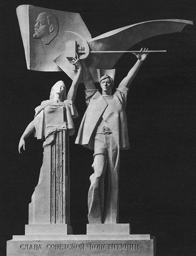 Ниже прикрепил фото скульптурной группы "Слава Советской конституции, выполненную в 1977г. выдающегося скульптора Бабурина Михаила Федоровича. Тогда ему было 50 лет.