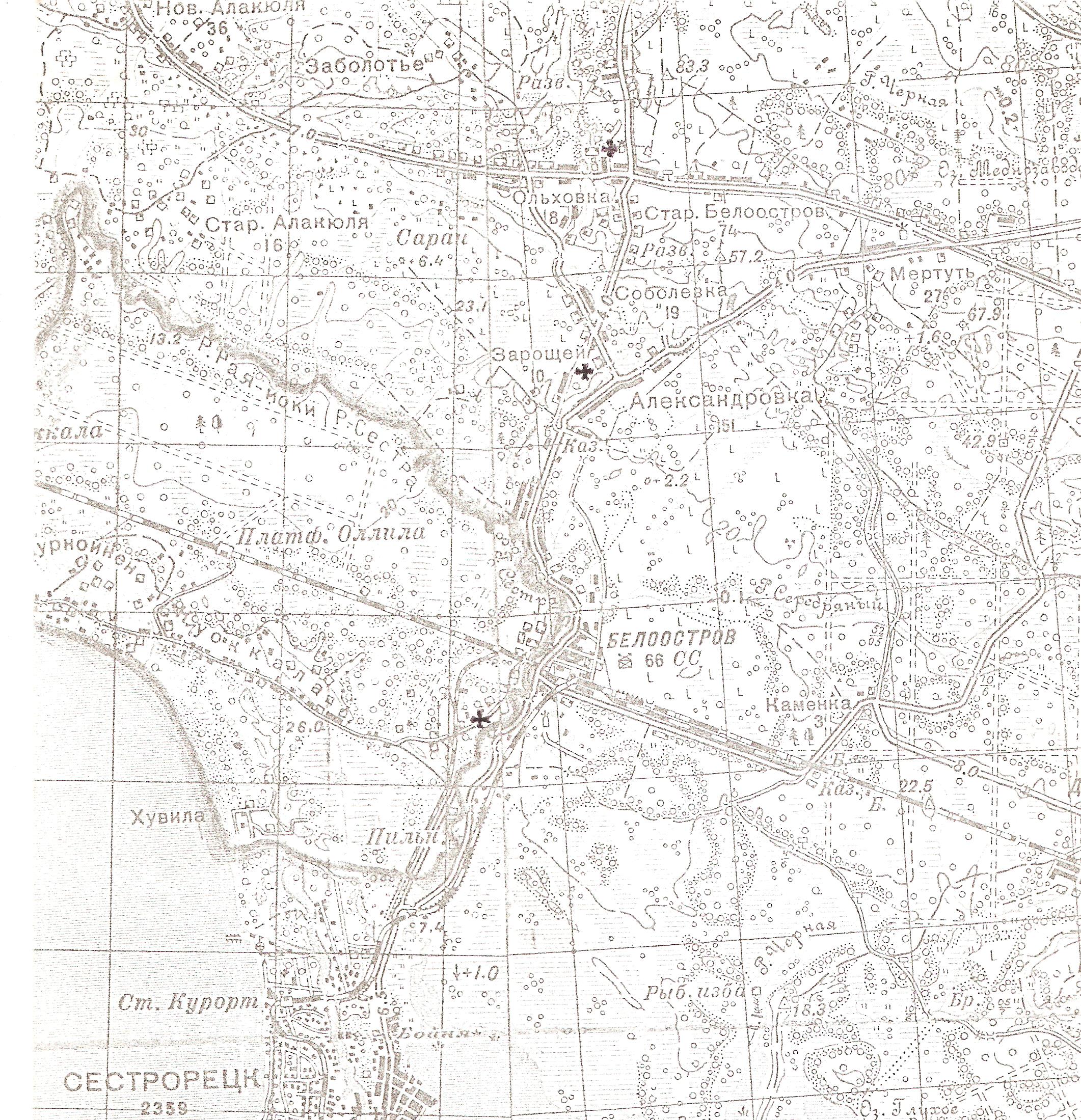 3. Когда мне приходилось встречаться с довоенными жителями Белоострова, то они абсолютно все просили уточнить (о каком населенном пункте идет разговор?) - Белоостров (станция) или Старый Белоостров (деревня). Также на картах Генерального штаба КА 1934/1937г.г. показаны два населенных пункта.