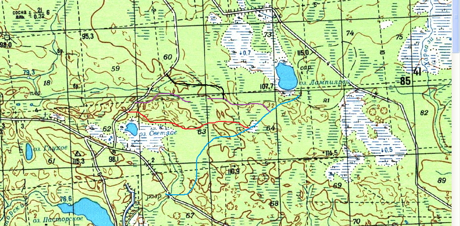 Собственно от Светлого до дороги на Лампи существовало две дороги-одна выходила до ручья,собственно её мы и обсуждали,и вторая выходила после ручья.