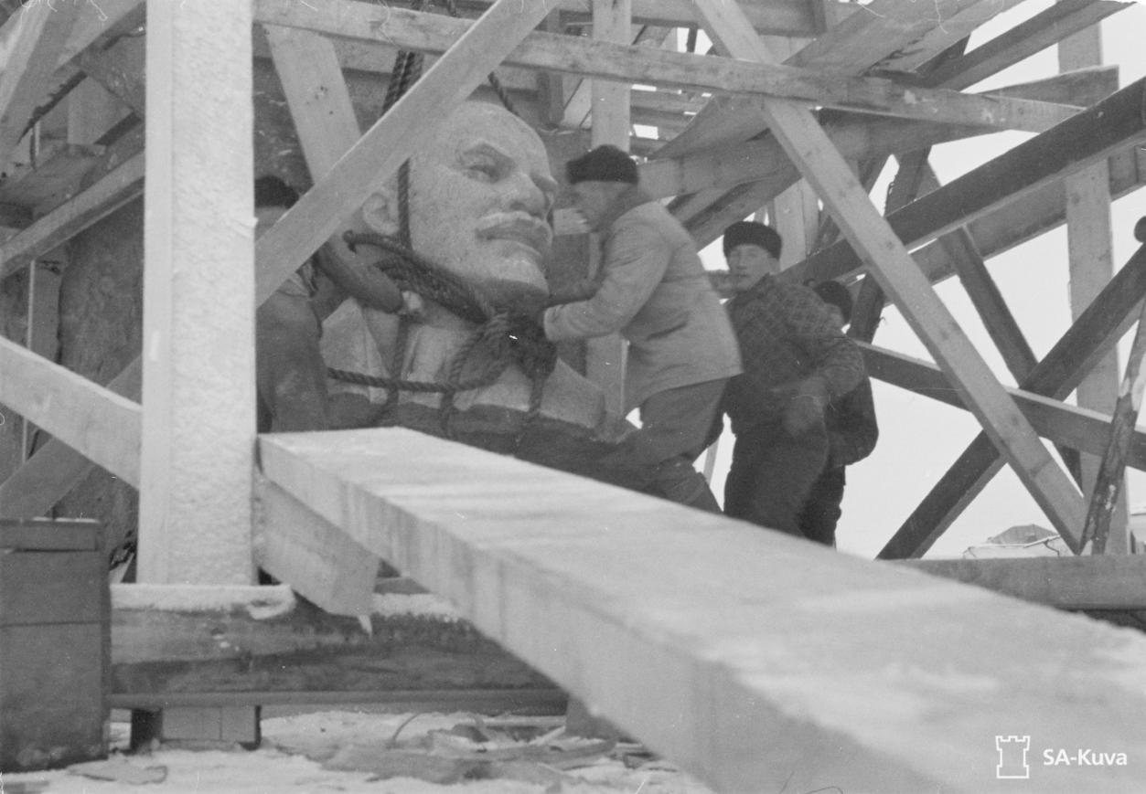 В начале сентября финны решили снять скульптуры с пьедесталов и отправить их в военный музей Хельсинки. Туда они свозили разные советские трофеи для демонстрации своих успехов. На 49332 Ленин уже демонстрируется толпам зевак в Хельсинском музее. Дата съемки 22 сентября 1941г. Там же 49333 Сталин из Ряйсялы и ...336 пограничник с собакой. Почему-то финны не смогли привезти статуи целиком, а распилили их на части. На 50081 еще один Ленин,доставленный откуда-то. Про военный музей в Хельсинки еще будет материал, но попозже .