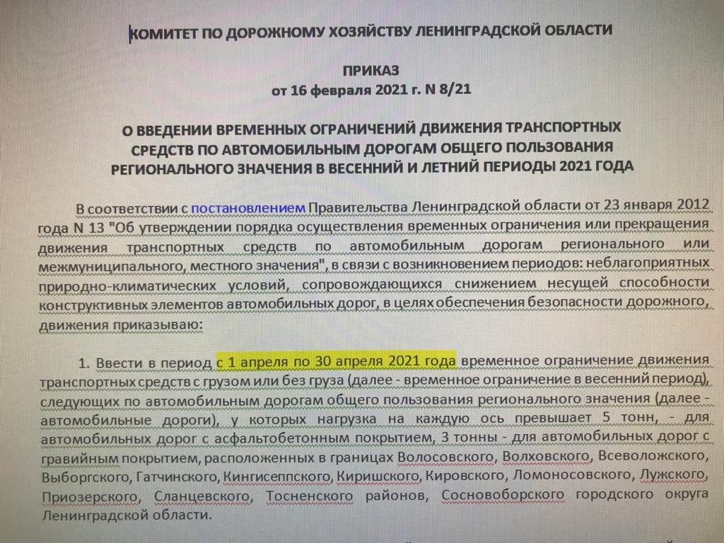 Воздержитесь от завоза грузов на свой участок до 1 мая.