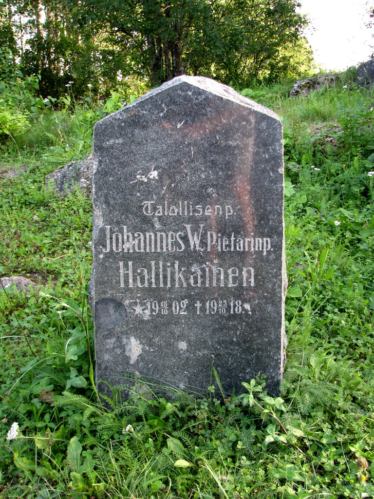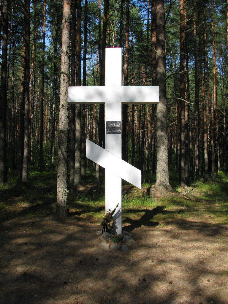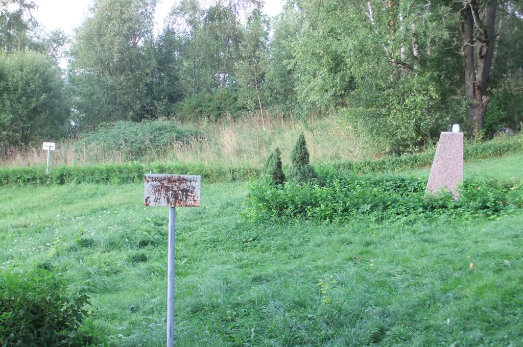 Так вот. Если смотреть на финскую карту, то в Hotokka/Стрельцово есть место под названием Sankaripatsas, что означает "статуя героя". На Викимапии место соответствует этому полю. У Балашова ничего про это место не нашёл. На Викимапии ничего не обозначено. Само место на натуре мы не нашли, хотя оно даже у меня в навигаторе отмечено, как кладбище. Насколько я понял из этого, там был такой же памятник героям 1918 года, как и в Muolaa. Установлен в 1920-м.
