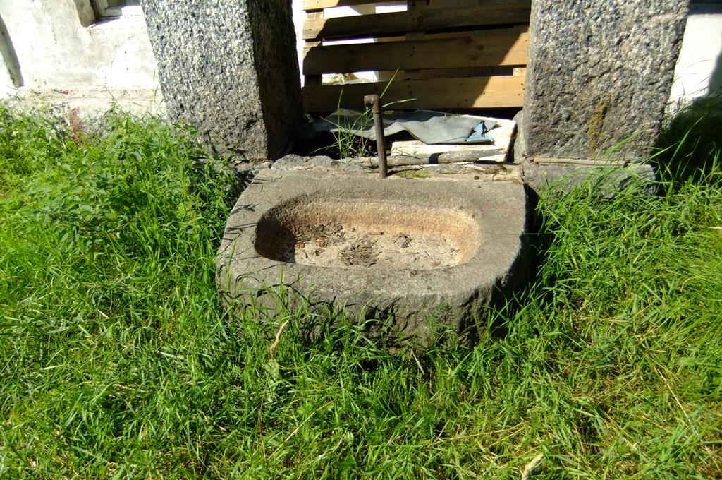 Под балконом, подпёртым гранитыми колоннами, поставлена гранитная же ванна неясного назначения: то ли поилка для животных, то ли мойка для ног...