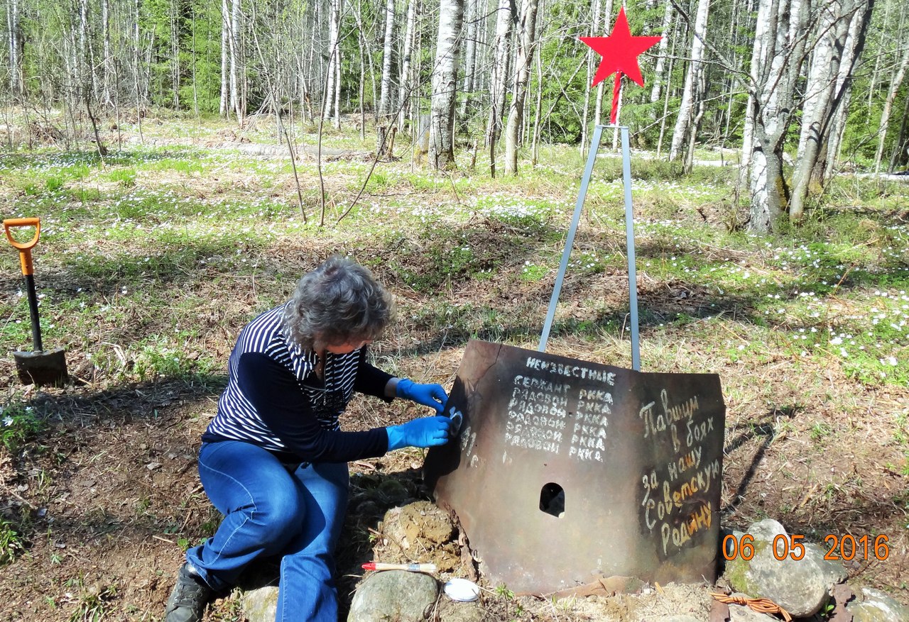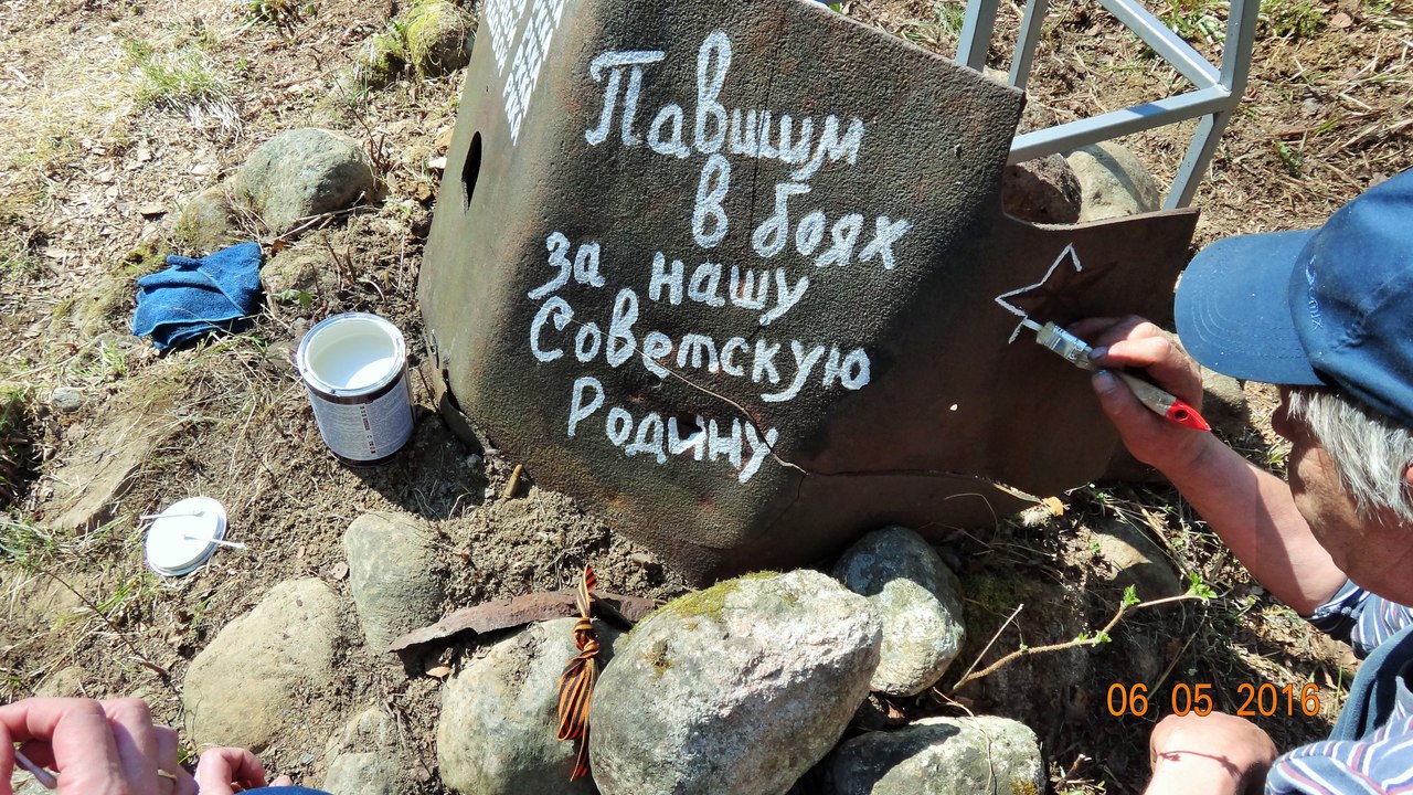 Потом уже один съездил к танкистам http://lenww2.ru/index.php/region01/area04?id=211 покрасил памятник и убрал старую сухую листву.