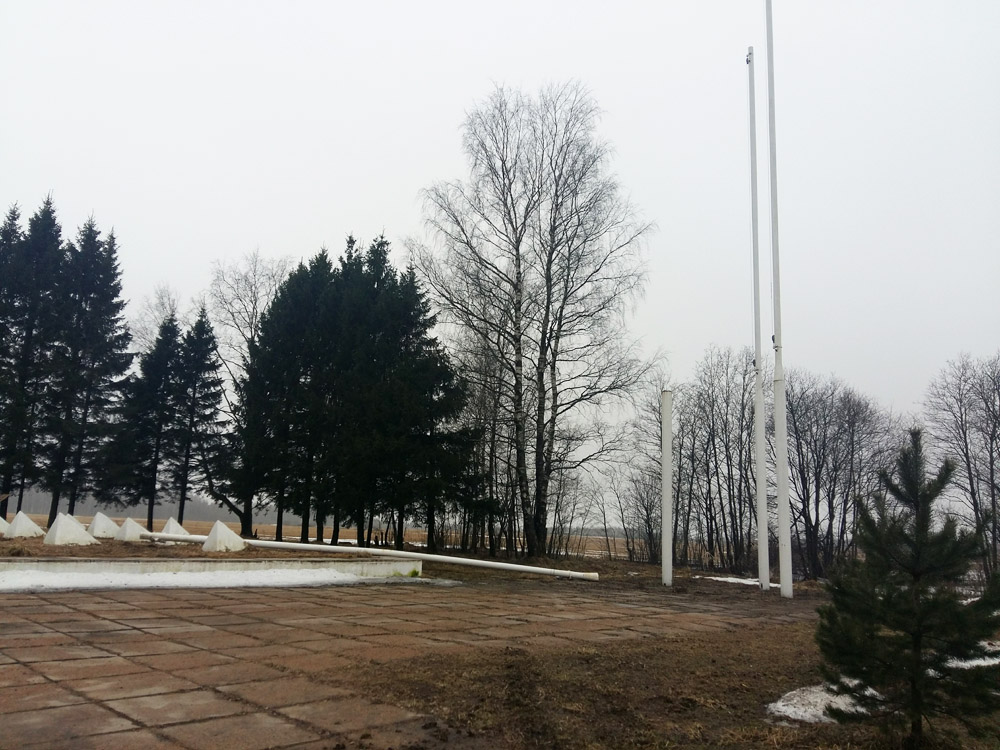 Плохо (дико, глупо) другое: по краю этих территорий, вдоль канавы понатыкали сосновых саженцев! Да, они сейчас невелики, смотрятся живенькой молодой порослью. Но пройдет лет 15, и они будут заслонять прекрасную панораму комплекса, оставляя лишь центральный проход от шоссе. 48 лет комплекс представлял собой красивую открытую площадку, прекрасно видную с шоссе ещё издалека и окруженную елками только с 3-х сторон (сзади и по бокам), но фронтальный вид не был скрыт деревьями.