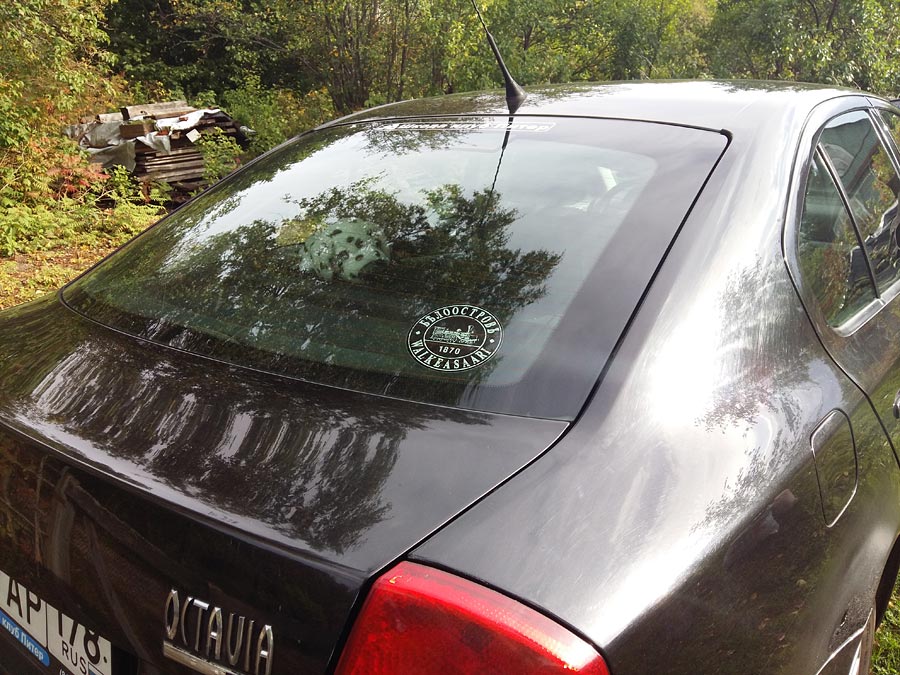 Так выглядит наяву наклейка "под стекло" (на фото мой авто)