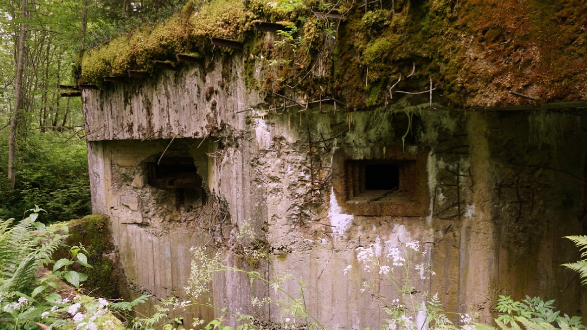 Амбразуры этого дота смотрят под углом градусов 90 друг к другу. Одна на практически чистый восток