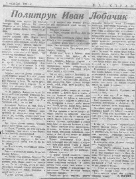 а вот вам газета Ленфронта "На страже Родины" от 6 октября 1941, где рассказывается о боевых делах Лобачика и капитана Лузина (помните такого из степановской писанины?) на юго-восточном рубеже Ленинграда - в составе 3/1029, приданного 168 сд.
