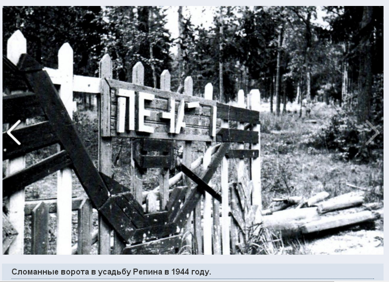 Финны уничтожили «Пенаты» 10 июня, в день своего отступления. Они взорвали усадьбу, а потом подожгли развалины. Кругом «Пенат» все дома целы, только памятник русской культуры они сожгли, сожгли до основания. Финны надругались и над могилой великого художника, сломали деревянный памятник, а доски разбросали по могиле.