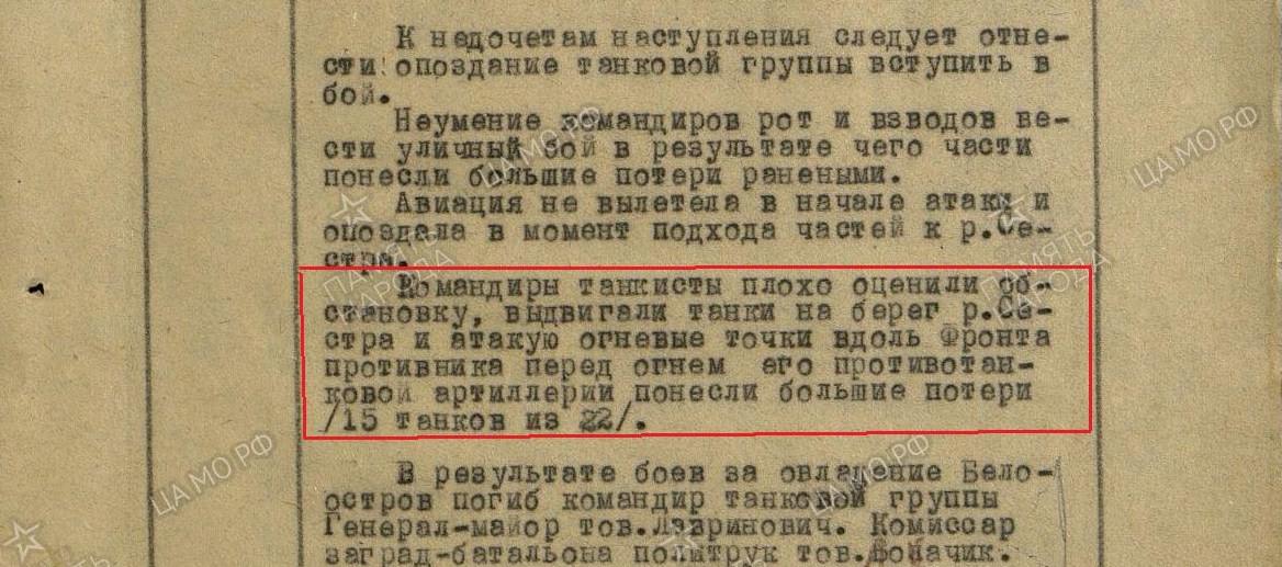 Вообще, описания боя в брошюре и ЖБД отличаются. Например, в брошюре ничего не сказано о потерях танковой группы (п/к ген. Лавриновича).
