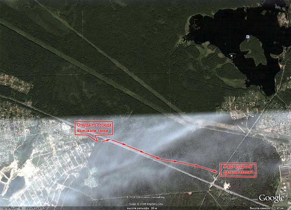 Ну вот, вроде все и срастается. Налево от поворота на Медное - прямая как стрела дорога на танкодром со всем прибамбасами - вододромом и т.п. А от АЗС на 36 км (где раньше была, как пишет Тамерлан, "яма" , точнее - эстакада, для техосмотра) - в аккурат просмативается сквозь дачные участки дорожка в район карьеров в Заозерном, выделенный на гугле Aqua$erga красным контуром. А оттуда недалеко и до газопровода. похоже, там и упражнялся Тамерлан.