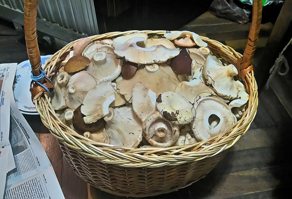 Появились боровики, пока что немного, более чем наполовину - червивые, в т.ч. и молодые. Присутствуют красные в небольшом количестве, встретил семейства совсем маленьких. Большие, с виду крепкие и красивые, внутри шляпки просверлены ходами червяков_мух. Есть подберезовики, нашел несколько моховиков, десяток маслят. Остатки груздевого слойчика - взято несколько десятков груздей. Потихоньку набрал 2/3 корзинки. Основной объем сбора представлен красными и подберями.