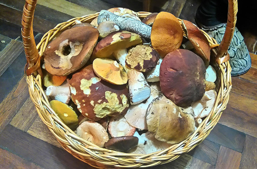 Корзинку заполнил довольно быстро, а потом просто гулял по лесу. В основе сбора красные и белые грибы, больше красных, сосновых и березовых. У средних взяты только шляпки.