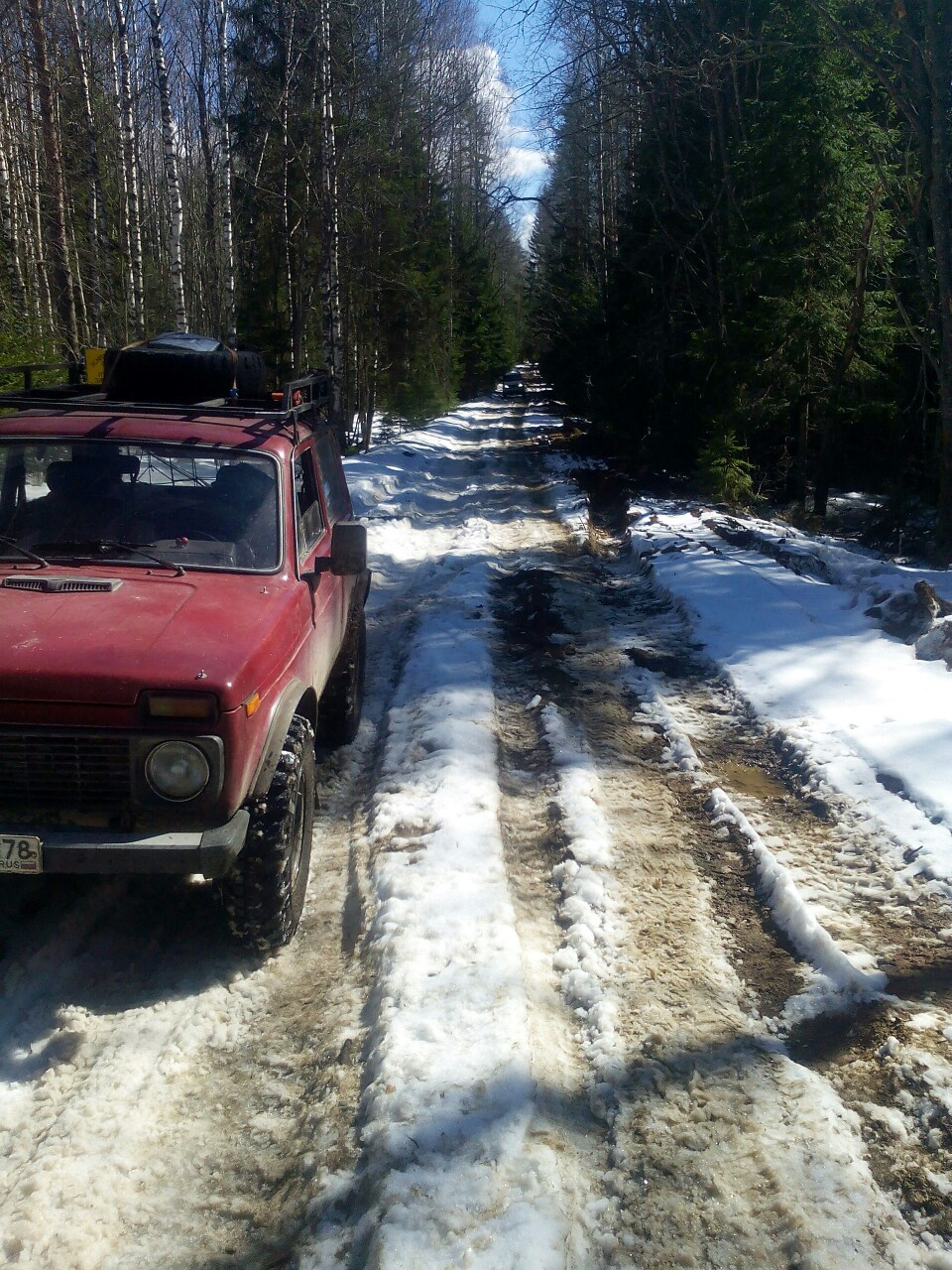 Прокатился в лес,вызволял Патриота из ямы.Снега много.Вдоль первой танковой проложили подземный кабель,теперь справа местами хорошая канава.Закопали овраг на подъеме с нефтепровода.