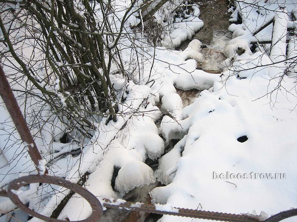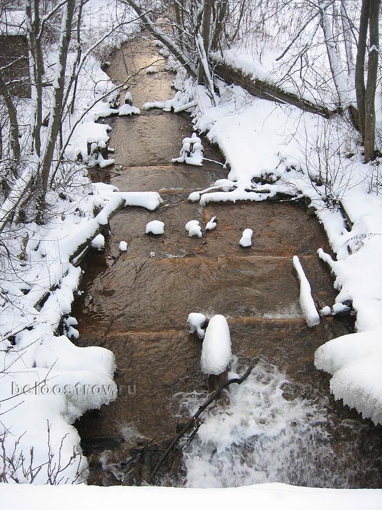 Ручей вытекает действительно с плотины, за которой начинается дорога "прямая, как стрела" (мне лестно, что моё определение прижилось...про эту дорогу как-нибудь напишу в соответствующей теме). Точнее, там идет тропа через поле, потом канава, потом какое-то кустистое место, и вот она, дорога.Т.е. исток явно искусственного происхождения, и он идет наискосок по краю поля и сливается с довольно глубокой канавой. Ручей (канал!) так и идет по краю леса, причем берега очень высокие - несколько метров (на глаз не скажу). Для меня всегда было загадкой, как у такого небольшого ручейка образовался такой каньон. Если где-то была электростанция и , соответственно, плотина, всё легко объяснимо (наверное...я в физике-геологии не сильна