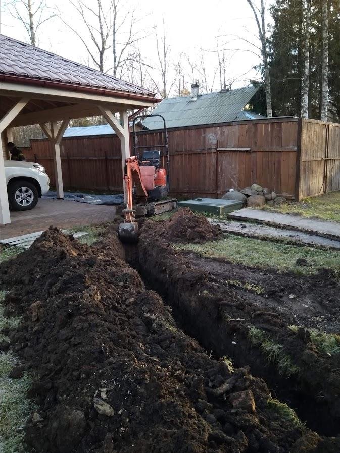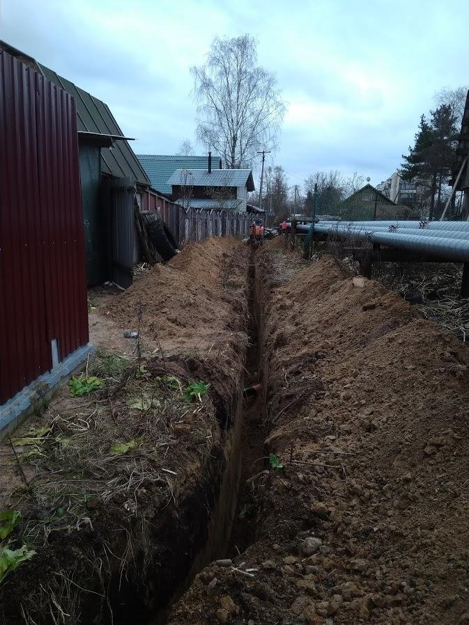 Дренаж 80 метров в ограниченном пространстве. С одной стороны большие витрины, с другой сложенная тротуарная плитка. Для разморозки грунта использовали "тепляк".