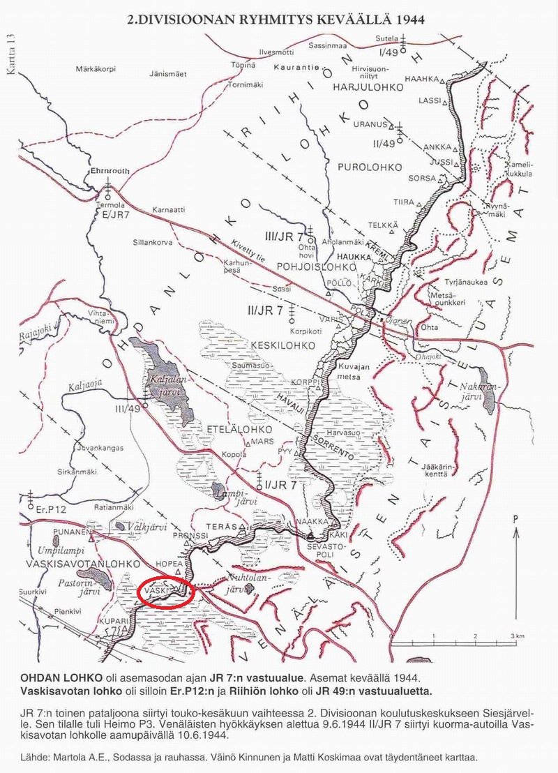vaski в простонародье "Бронза" (хотя с финского это латунь) это опорник финнов начинается с развилки 1 танковой и дороги на Лампиньярви, идёт с правой стороны вдоль 1 танковой, пересекает нефтепровод и заканчивается памятником танкистам и большой лужей на 1 танковой,( это всё Vaski). дальше 200 метров ничьей, потом в овраге передок РККА.