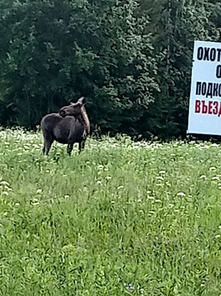 Ну если приглядеться, то видно что фото сделано с другой стороны таблички.На лосиную территорию не покушались