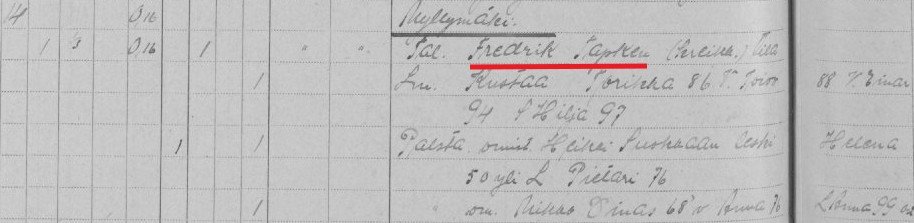 Есть одно газетное объявление от 1912 года, где упоминается 14 участок в Ахиярви. И там присутствует Феодор Тапкен. Фредрик, тем более православный, может быть Федором, а изначально - Фридрихом, например. Поэтому искать и сложно.