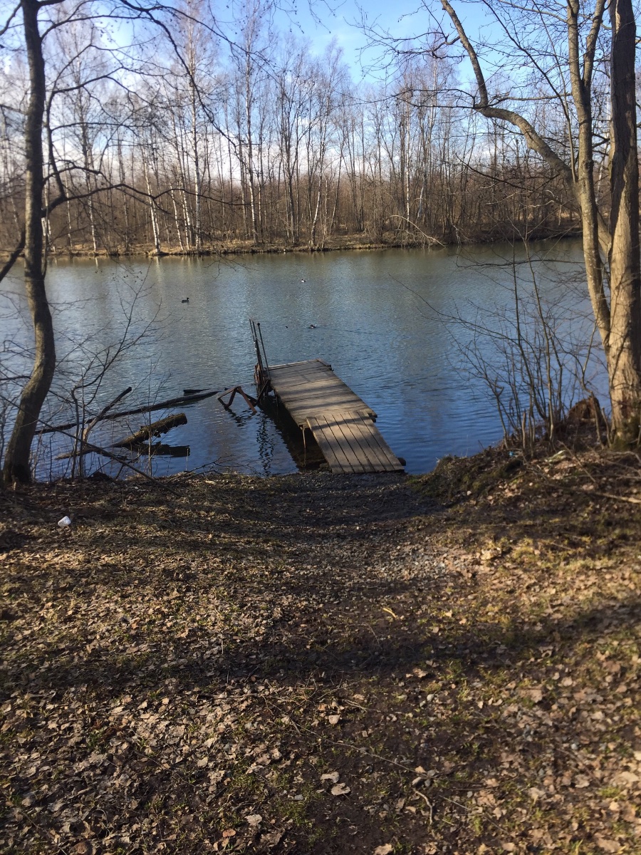 Мостик на Заводском озере в апреле (первое фото) и сейчас -