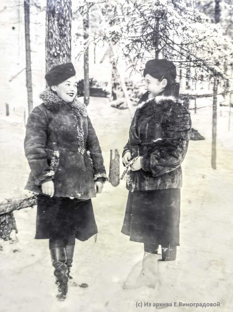 - Виноградова А.Н. (слева). Ленинградский фронт.Елизаветинка. 1943 г.