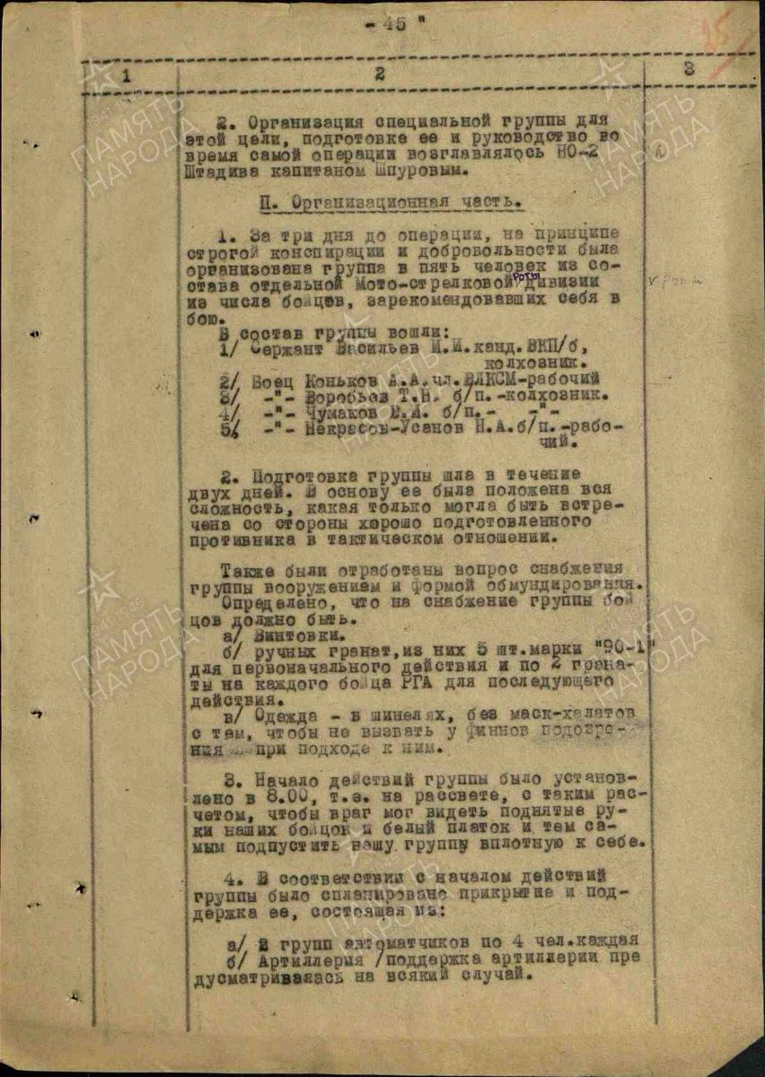 Список разведгруппы. Вопрос собственно в следующем. Что о данной акции "говорят" финны? И какова судьба людей ушедших видимо в свою последнюю разведку. Нашел всего по разным базам 5-6 человек. Все погибли в финском тылу.