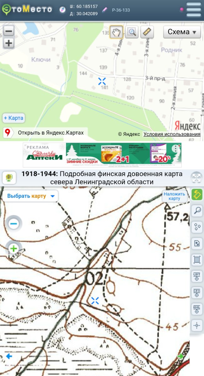 Нет, где крестик, там Корва, вернее крестик между Корвой и Кярки. Кярки выдвинут к Авангарду. ИМХО приблизительно где 2 линия нынешнего СНТ Родник... Может 3-я.. Корву знатно кстати накрыло. Там до сих пор воронки метров по 5..