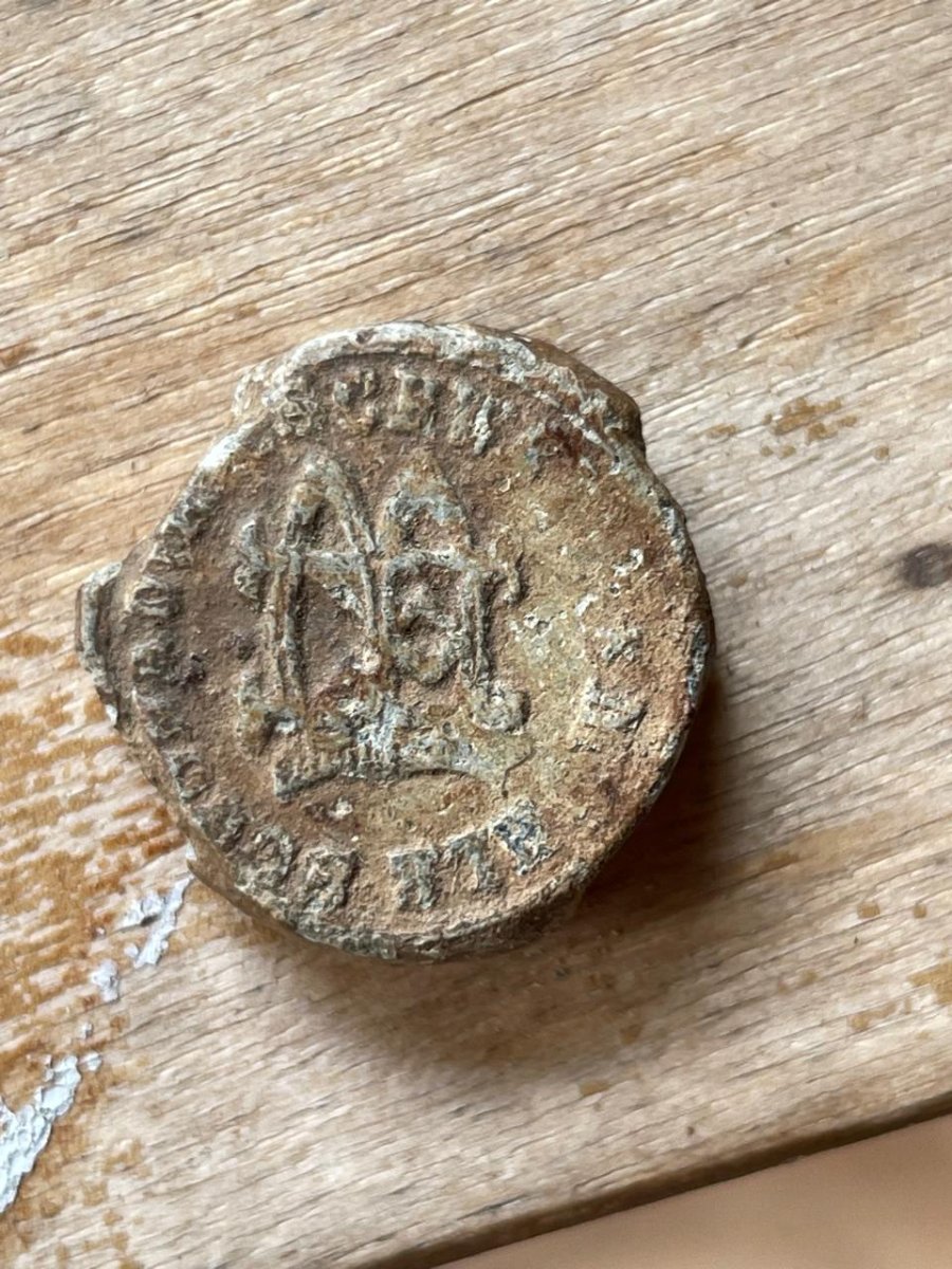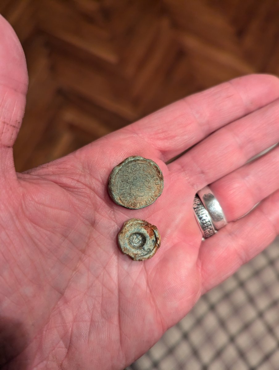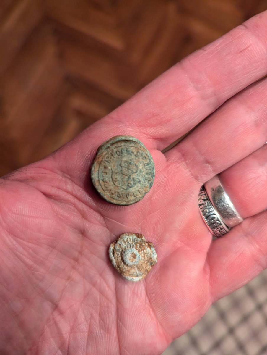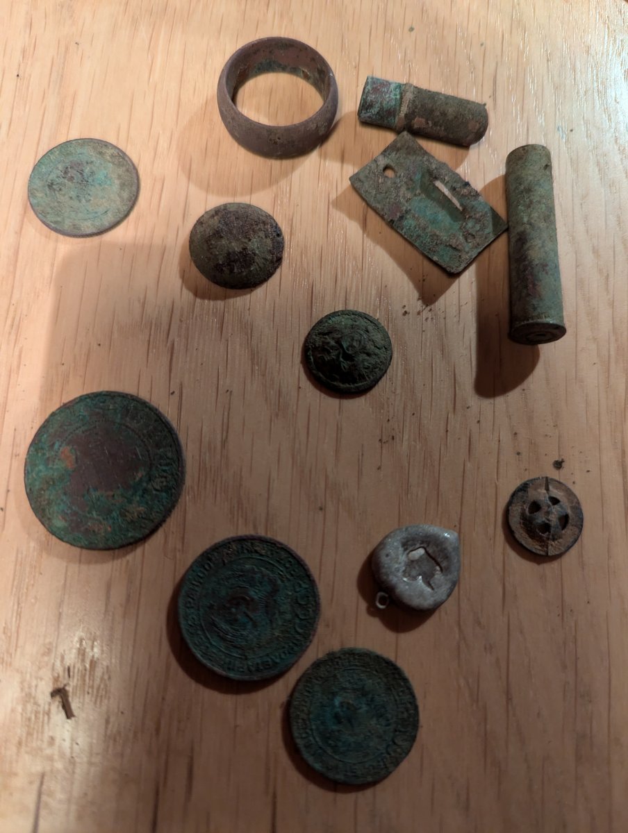 С одного места, ещё пуговица позолоченная имперская и пару монет