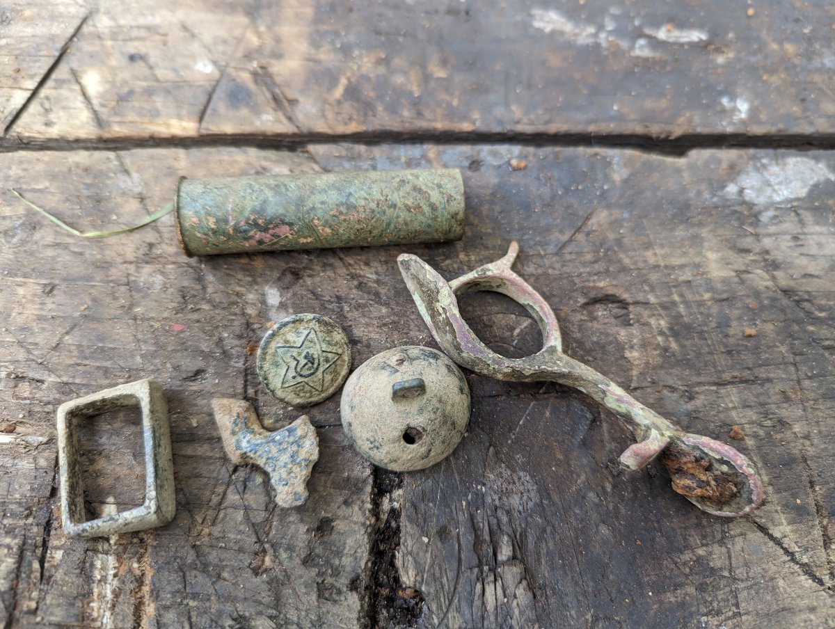 В сравнении с Псковской, наш край продолжает радовать и утешать. Выходили несколько раз летом и до самой поздней осени - в снегах - на Калеловский кордон. Были открыты несколько домов, которых нет на картах. По находкам - это дома пограничной стражи и инженеров. Монеты, стекло, украшения, предметы культа ), форменные пуговицы имперские в золоте, интересные бутылочки. Не много, но интересно.