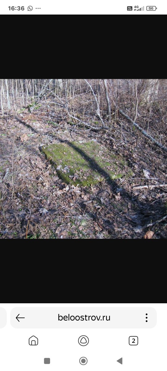 Плиту. поросшую мхом, не нашел. Возможно, ее там уже нет.