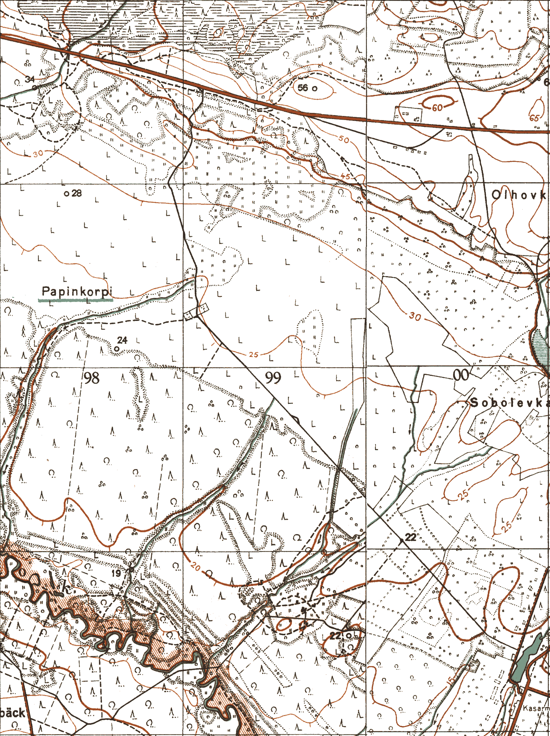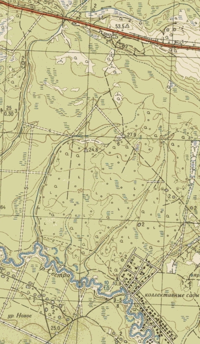 Вот она-то пока и не разгадана. На довоенных картах его, вроде, нет. А на картах РККА времён войны уже есть. Например, вот на этой, взятой из темы про аэрофотосъёмку.