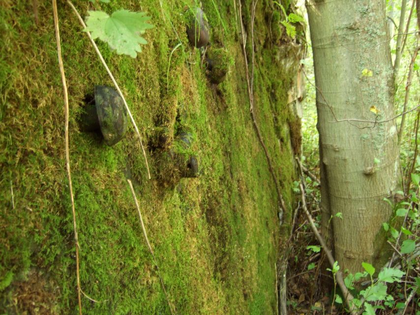 Леса в Лемболовском БРО хорошие, грибные ( грибов, правда, было маловато. Если бы не 11 красноармейцев, найденных в одном месте, то можно сказать, что и нет совсем). Лес изрыт окопами, землянками. Многополосная система обороны. Иногда попадаются ручьи и болотца. Доты находятся в труднодоступных местах. Дорог, ведущих к ним в лесу нет. И это есть очень гут. Описывать доты большого смысла нет. Ничего необычного, кроме, может быть, того, что в одном из них сохранились плафоны и несколько пакетников с электрощитом. А, вот,- посмотрел почти 500 фотографий сегодняшних и сразу вспомнилось. Некоторые доты обшиты броневыми листами. Не весь, а только со стороны фронтальной амбразуры. Толщина броневого листа около 8 сантиметров. Заделаны здоровенными заклепками. Многие доты хорошо повоевали, на всех есть боевые отметины. На одном из них есть разрушения от снарядов диаметром около 50 и глубиной сантиметров 20. Но в одном доте использовали некачественный бетон что ли? Крошится под пальцами в одном месте. Во всех дотах сохранились крючочки для одежды, чего нет почти во всех остальных дотах разных БРО. В некоторых есть большие надписи краской ДМБ-72, получается, что после 72 года доты не использовались и находились в консервации? Иначе какой-нибудь злой полковник-проверяющий уж приказал бы заштукатурить.