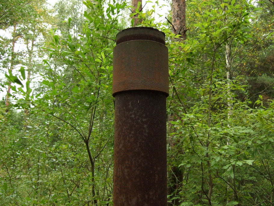 Дело все в том, что данная " труба для буровых скважин" находится на покрытии дота. Вряд ли там собирались добывать нефть. Диаметр ее сантиметров 15, толщина стенки около сантиметра ( чуть меньше)