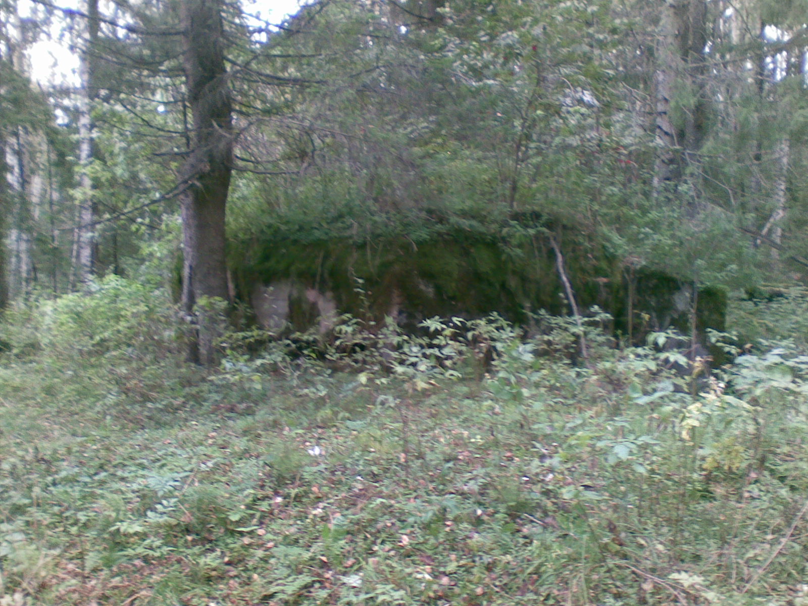 Трехамбразурный дот. Конечно, один этаж. Амбразуры смотрят классически на север, запад, юг. В основном каземате - южная, западная и ФВУ, в отдельном - северная. Отличается хорошим состоянием. Похоже до меня тут были только истинные краеведы. Готовый музей- только табличку повесить. Дот малоизвестный. Он наверно из тех, что "кауроведы" не рассекретят ни при каких условиях. Я к ним присоединяюсь. Скажу только, что находится .... в лесу. И это будет чистая правда. Просто так натолкнуться на него в этих дебрях практически невозможно, GPS в этом лесу сигналы не принимает, только на полянке у дота, где я и убедился, что нахожусь в требуемой точке. А если бы я ее не знал .....Было бы как в прошлый раз, когда не дошел 200м. Да и за 50м не увидел бы. Так что у него есть хорошие шансы и в будущем сохранить свою "целостность".