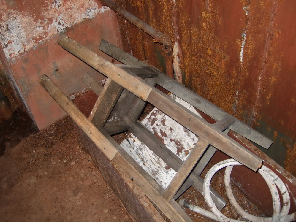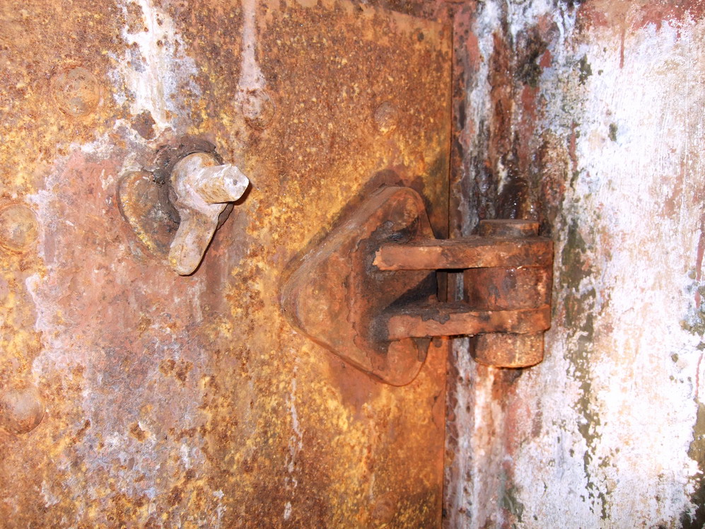 Второй дот в густой растительности. Буквально метрах в тридцати и обнаружился. Очень интересная конструкция. Три пулеметных и одна наблюдательная амбразура. В доте, включая противоштурмовую решетку, девять! дверей. Девять помещений. ФВУ в нормальном состоянии, чуть поржавела. Была водяная колонка. Вроде, была какая-то электрическая машина – сохранился фундамент и шпильки. Большие металлические шкафы. В них обнаружились коробка из-под чая Ахмад, бутылка из-под виски, пустые консервные банки. Кто-то заботливо подвесил полочки. На них вперемешку с вешалками что-то лежит, завернутое в старое одеяло. Надо было вообще-то проверить. Вдруг контрабандный товар?