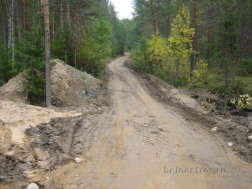 Поначалу я решил, что сия трасса и проложена через искомый перекрёсток, и разумеется, повёл команду направо. В итоге, дошли мы до Камешков, а именно - до Пасторского ручья. Поняв свою ошибку, мы развернули стопы в обратную сторону. Благо, встретился "грибник-ягодник", который уже был знаком с перестройкой сей местности, и указал нам искомый перекрёсток. Он был метрах в 200-х влево по новой трассе от выхода старой дороги на неё. По ходу видели массу карьерных "Volvo" на чудовищных колёсах (пашенная резина КрАЗов - отдыхает), которые ездили как с карьера - с песком - так и обратно - пустые. Жаль, не сфотографировал.