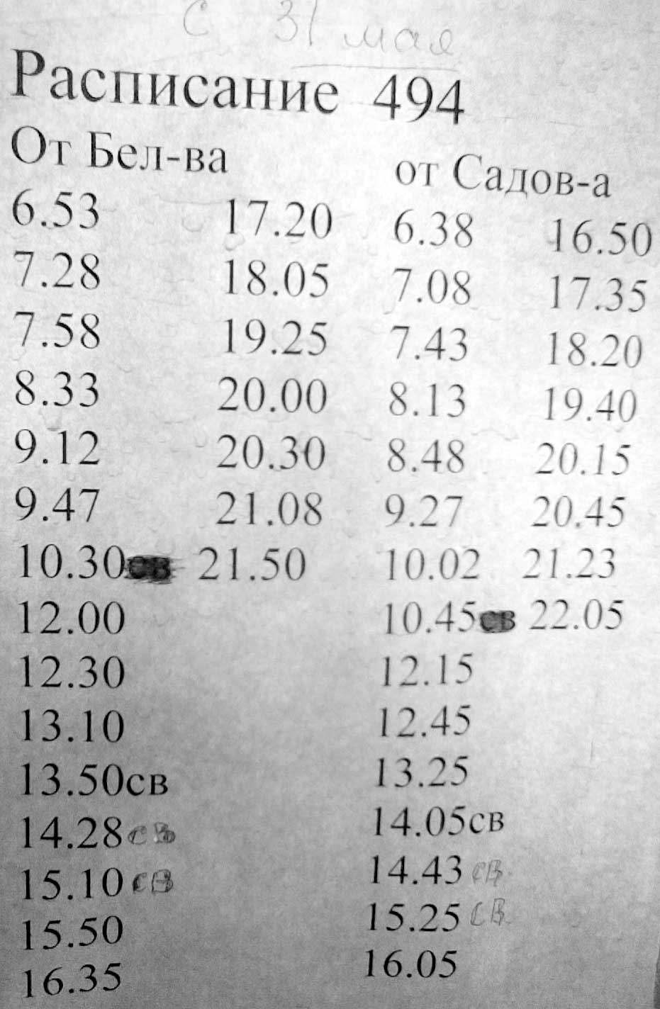 Сфотографировал летнее расписание авт. 494: ст. Белоостров -Сады и обратно.