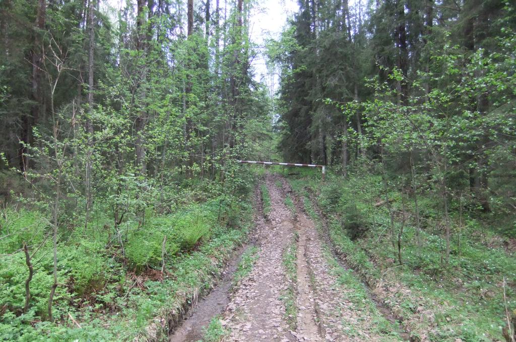 За шлагбаумом дорога доступна, пожалуй, только для квадроцикла лесника