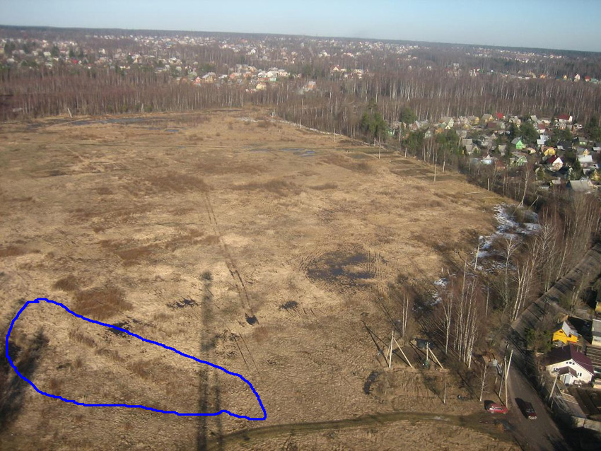 А ведь можно определить, была ли дамба, какой высоты, и возможно даже ее длину - она должна быть одного уровня с уровнем Александровского ш.(чтобы вода подходила к шоссе)! Жалко у меня нет длинного уровня, не говоря уж о теодолите.