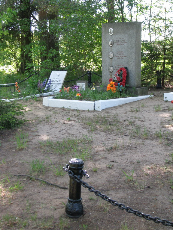 Трудно разобрать - что написано на табличке. Но если будет установлено точное местонахождение памятника - я в сезон сфоткаю почётче.