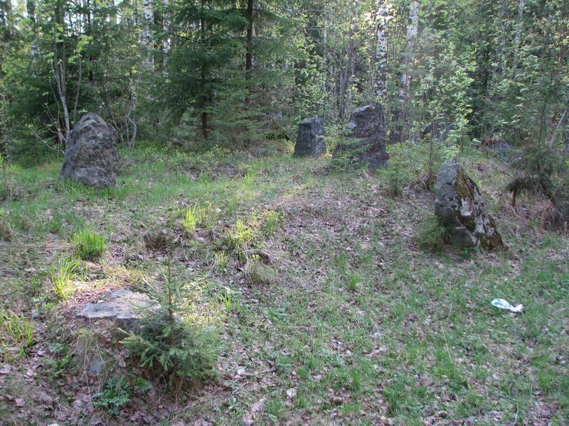 Вот тут умные товарищи подсказывают, что у финнов были гранитные надолбы. Но эти камни не похожи на надолбы - стоят группкой, как сельское кладбище.