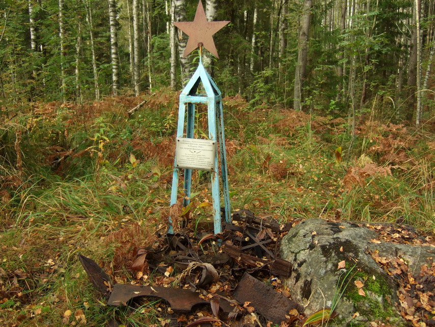 "Вoинaм 1 крaснoзнaмённoй тaнкoвoй бригaды, пaвшим здесь 9-10 июня 1944 г. при прoрыве финских укреплений.